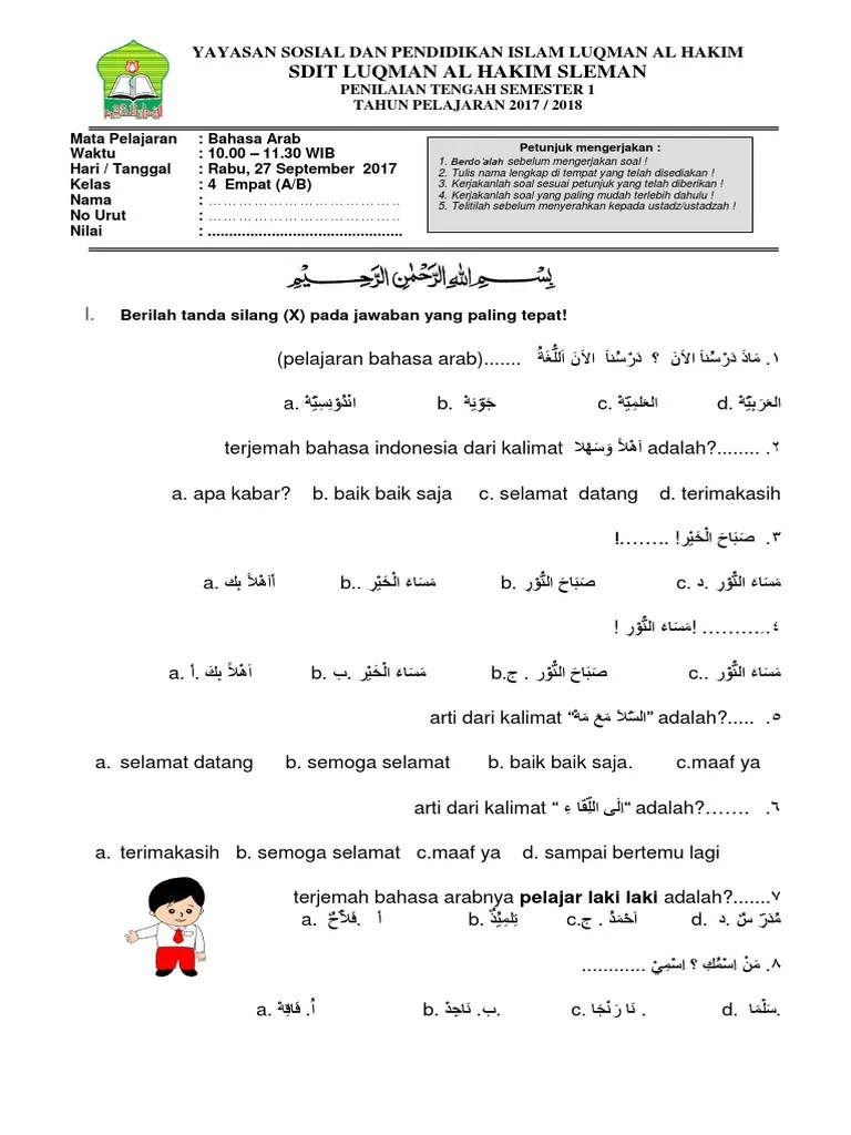 Download kunci jawaban dan soal soal uas bahasa arab kelas 4 sd/mi